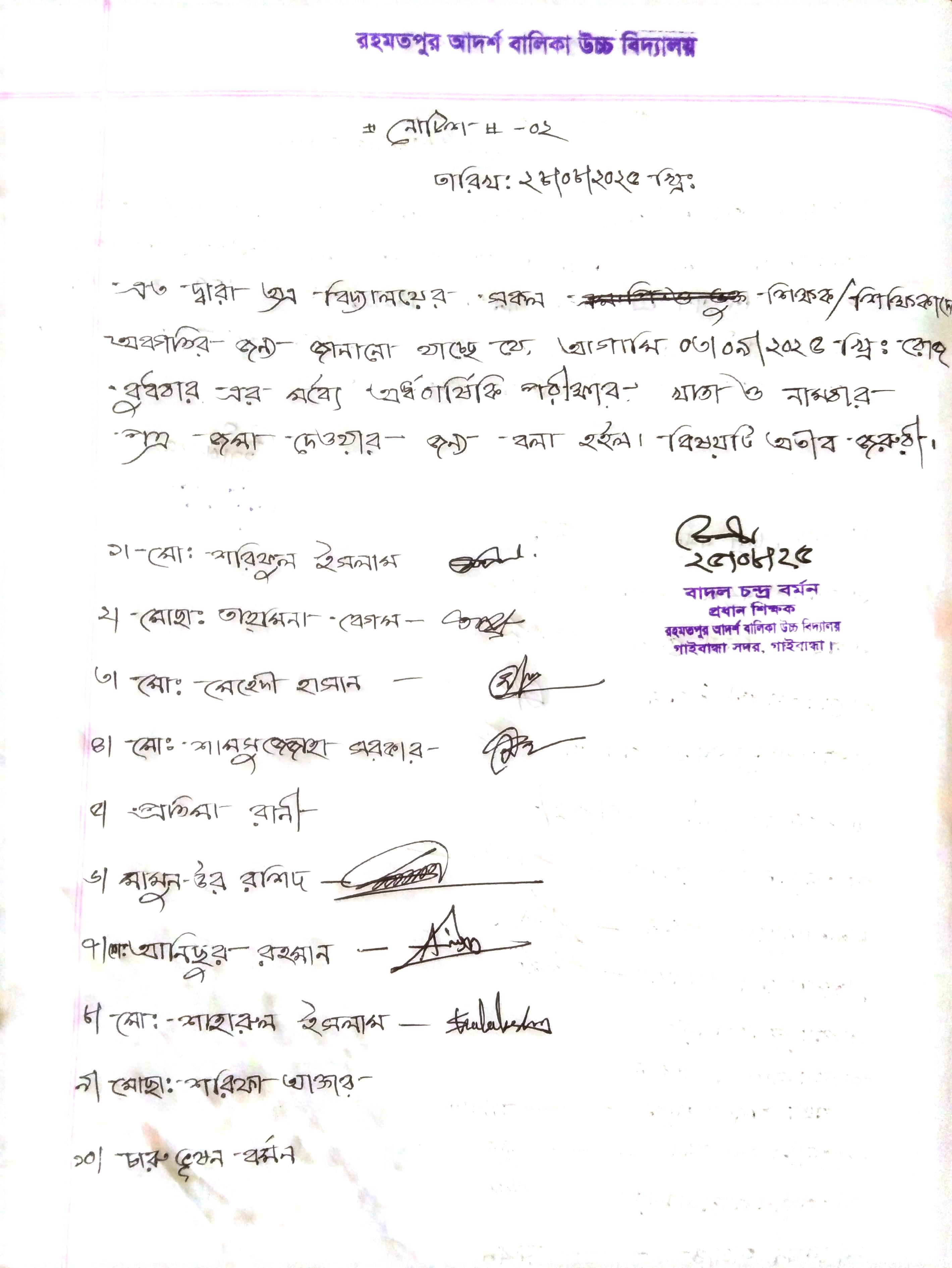 ২০২৫ সালের ১০ম শ্রেণির শিক্ষার্থীদের প্রাক-নির্বাচনী পরীক্ষা আগামী ০১/০৯/২০২৫ইং তারিখ হইতে আরম্ভ হইবে।